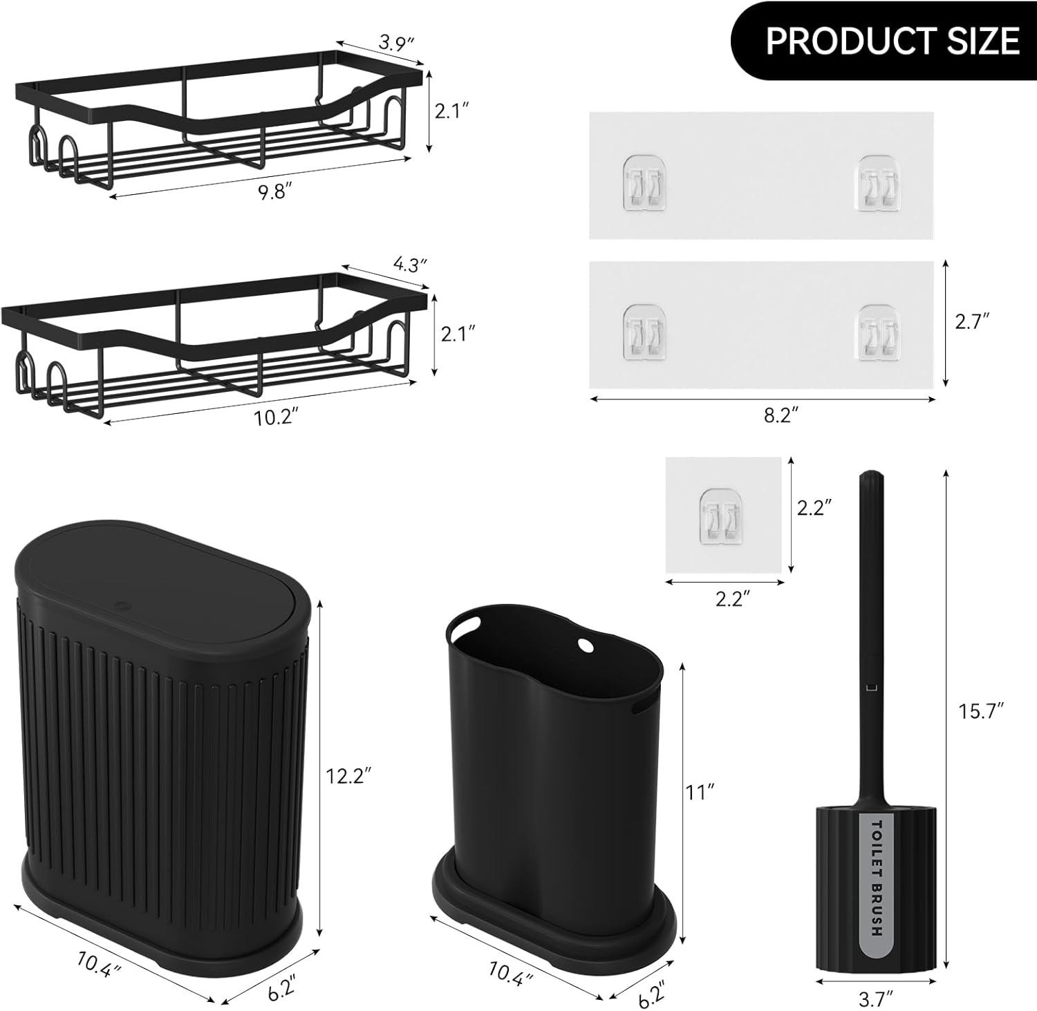 | Included Components | Bath Shelves, Stainless Steel Trash Can, Toilet Brush and Holder Set |